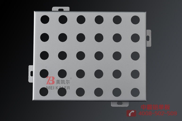 沖孔鋁單板是在具有氟碳涂層的優(yōu)質(zhì)高強度鋁合金板材的基礎(chǔ)上通過沖孔技術(shù)形成不同形狀的現(xiàn)代建筑材料,其具有普通建筑材料的無法比擬的抗腐蝕性和耐候性,能抗酸雨、鹽霧和各種空氣污染物,耐冷熱性能極好,能有效抵御強烈的紫外線照射,并且能長期保持產(chǎn)品不褪色、不粉化,使用壽命長等等的優(yōu)良性能 。